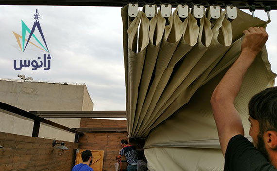 سقف متحرک کافی شاپ یا رستوران پارچهای
